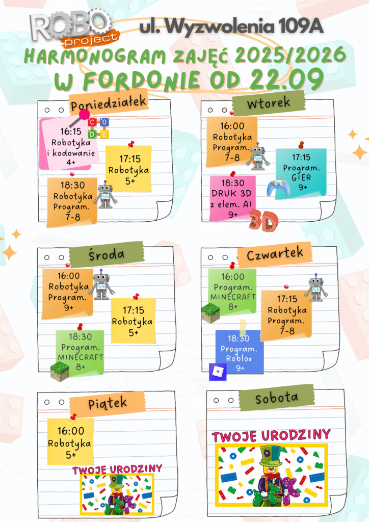 Nowy sezon przynosi ze sobą jeszcze więcej emocji, projektów i wyzwań. Każdy z kursów został starannie zaplanowany, aby zapewnić dzieciom angażujące i rozwijające zajęcia, które jednocześnie umożliwią zdobycie praktycznych umiejętności. Dla stałych uczestników, mamy nowości!